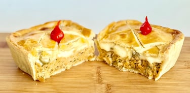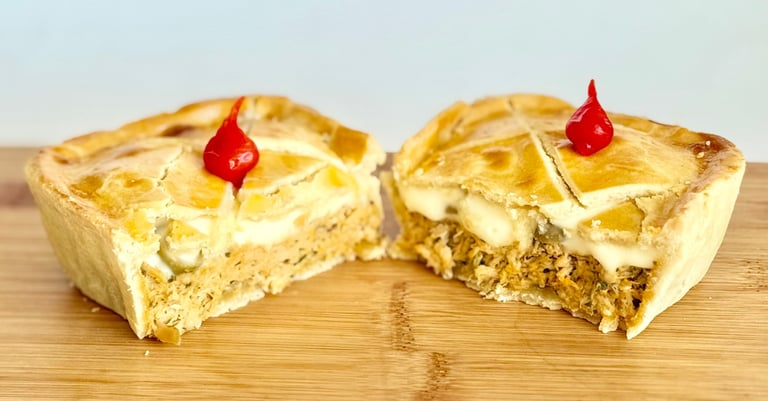 Massa quebradiça que derrete na boca, recheio cremoso de peito de frango desfiado e um toque final de suave creme de queijo.